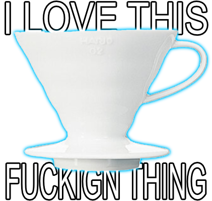 If you want to learn more about the V60 and brewing with it, here is a video by James Hoffman called A Better 1 Cup V60 Technique that lays out the best technique for pouring into one he’s worked out (and I use it so it’s gotta’ be good). If you want a ceramic V60 there’s a link to Hario’s site in an image credit above or you can check your local coffee shops. At some point I need one of those kettles with the long spout but I want to see if I can get that electric too.