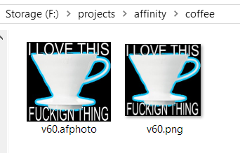 For this example, I have a directory for an Affinity Photo source file of my V60 blogpost image.