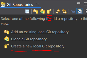 In Minimal EGit, select the “Create a new local Git repository” option in the left-hand “Git Repositories” section. If that text isn’t available, there then is an icon at the top of “Git Repositories” that will also work.